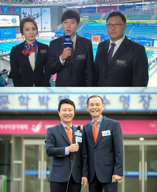 일단 SBS는 관록의 배기완 아나운서와 ‘박태환의 스승’인 노민상 해설위원이 책임졌다. MBC는 패기 넘치는 해설로 맞섰다. 김나진 아나운서와 류윤지, 김성태 해설위원이 나섰다.