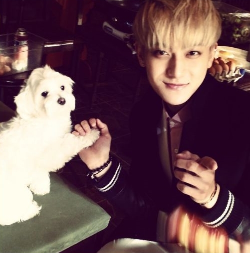 공개된 사진 속 타오는 흰 강아지의 손을 잡은 채 카메라를 응시하고 있다. 특히 깔끔한 재킷과 셔츠를 입고 훈훈한 외모를 과시해 눈길을 끌었다.
