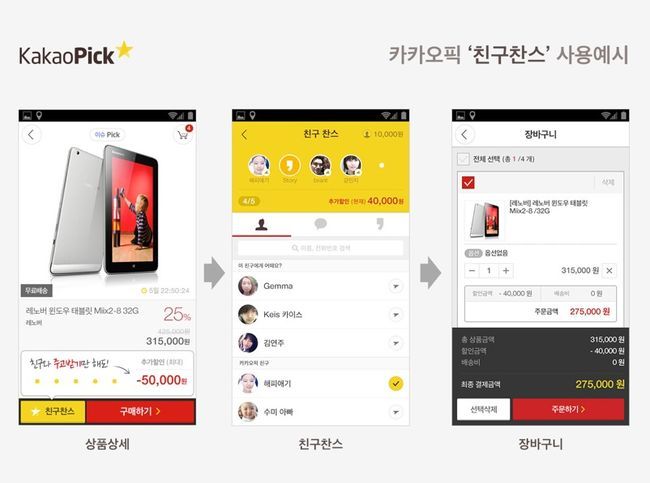 카카오가 친구 기반 할인 서비스를 접목한 모바일 쇼핑 '카카오픽' 서비스를 공개했다.