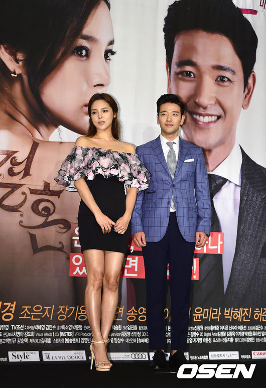 배우 박시연과 배수빈이 제작발표회에 참석해 포토타임을 갖고 있다.