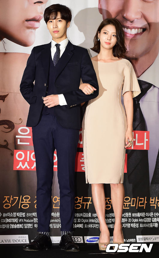 배우 노민우와 엄현경이 제작발표회에 참석해 포토타임을 갖고 있다.