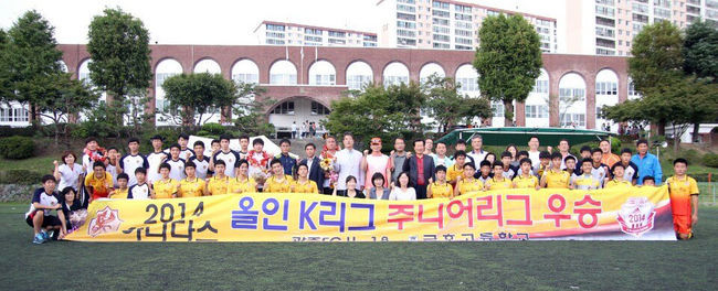 광주는 지난 20일 금호고등학교에서 열린 ‘2014 아디다스 올인 K리그 주니어’ 20라운드 대전시티즌 U-18팀과의 경기에서 나상호의 멀티골에 힘입어 2-0 승리를 거뒀다. 광주는 이날 승리로 15승 3무 1패(승점 48)점을 기록하며 제주 유나이티드 U-18팀과의 마지막 라운드 경기 결과에 상관없이 자력으로 조기우승을 확정 지었다.