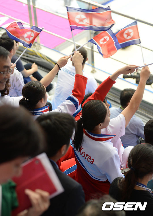 북한 응원단이 응원을 하고 있다. /sunday@osen.co.kr