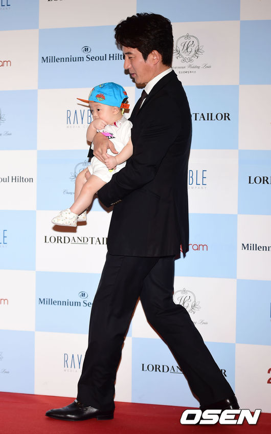 결혼식에 참석한 정준호가 아들과 함께 포토월로 입장하고 있다.
