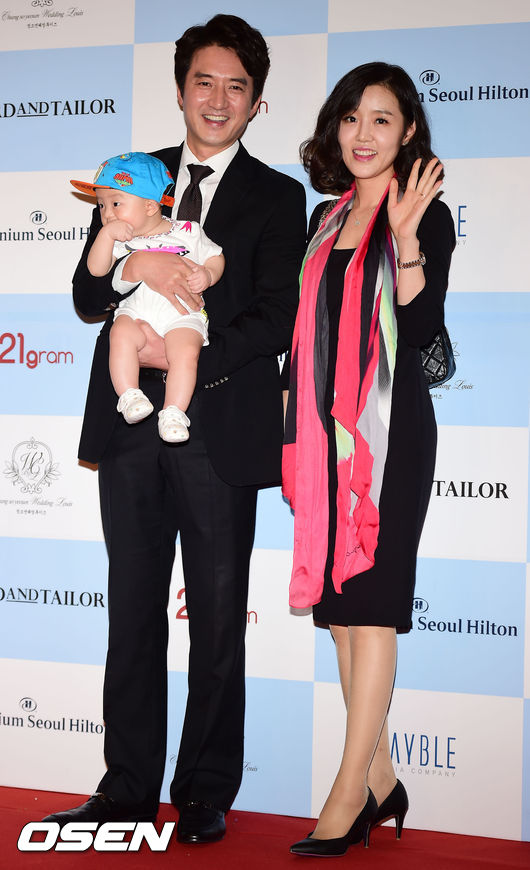 결혼식에 참석한 정준호 이하정부부가 아들과 함께 포토타임을 하고 있다.