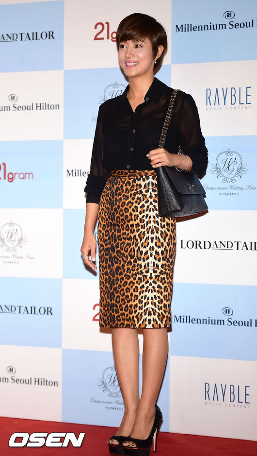 결혼식에 참석한 최송현이 포토타임을 하고 있다.