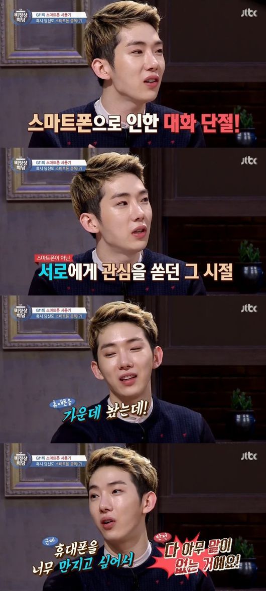 2AM 멤버 조권이 스마트폰 사용을 많이 하게 되면서 다른 사람과의 대화가 줄었다고 고민을 토로했다.