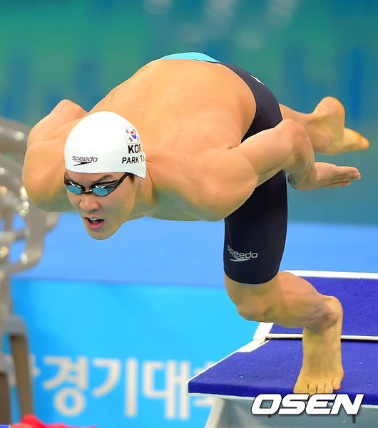 23일 오후 인천 문학박태환수영장에서 열린 '2014 인천 아시안게임' 남자 자유형 400m 예선에서 박태환이 스타트를 하고 있다.