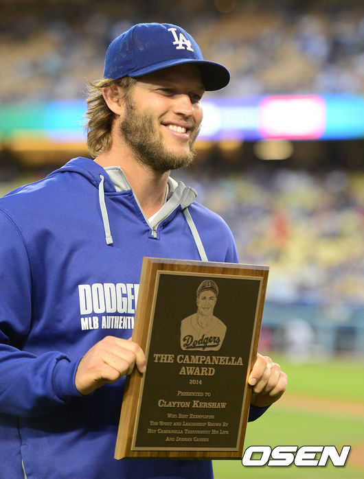 LA다저스 에이스 클레이튼 커쇼가 23일(이하 한국시간) 제 9회 로이 캄파넬라상을 받았다.