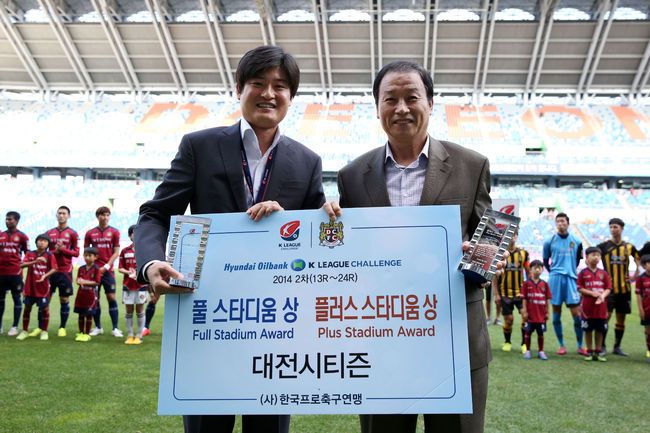 K리그 챌린지 성적과 관중 순위 모두 선두에 올라 있는 대전 시티즌이 최다 관중 팀에 수여하는 '풀 스타디움 상'과 최다 관중 증가율을 기록한 팀에게 부여되는 ' 플러스 스타디움 상'을 동시에 수상했다.