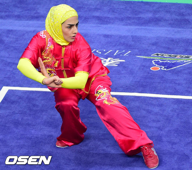 23일 오전 인천 강화군 강화고인돌체육관에서 열린 2014 인천 아시안게임 우슈 여자 장권에서 이란 라자비 하니에(Rajabi Hanieh)가 연기를 펼치고 있다.