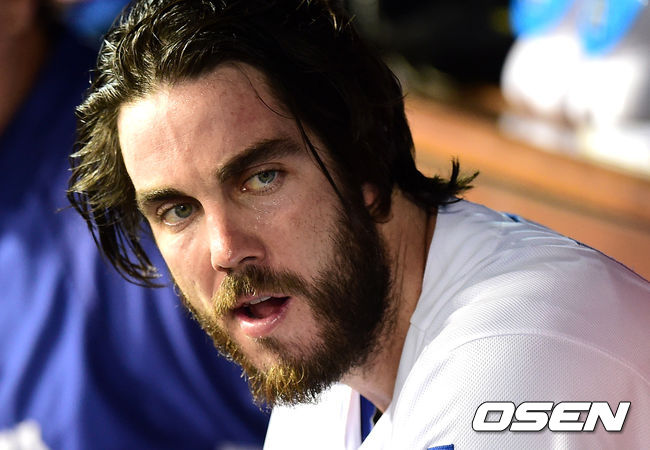 5회초 수비를 마치고 다저스 댄 하렌이 더그아웃에서 아쉬운 표정을 짓고 있다. 댄 하렌은 5이닝 2실점.