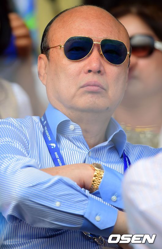 23일 오후 인천 드림파크승마장에서 열린 '2014 인천 아시안게임' 마장마술 개인전 결승에 한화 김승연 회장이 아들 김동선을 응원하기 위해 관전하고 있다