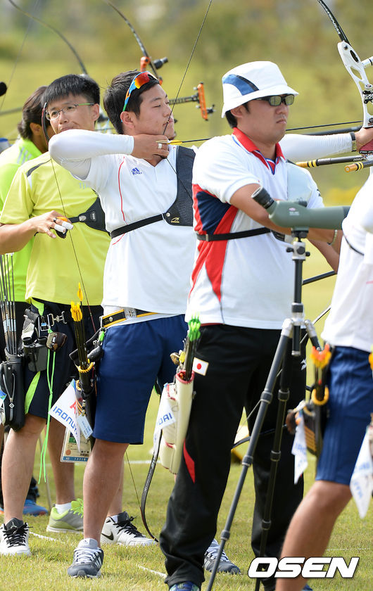 한국 이승윤이 활시위를 당기고 있다.