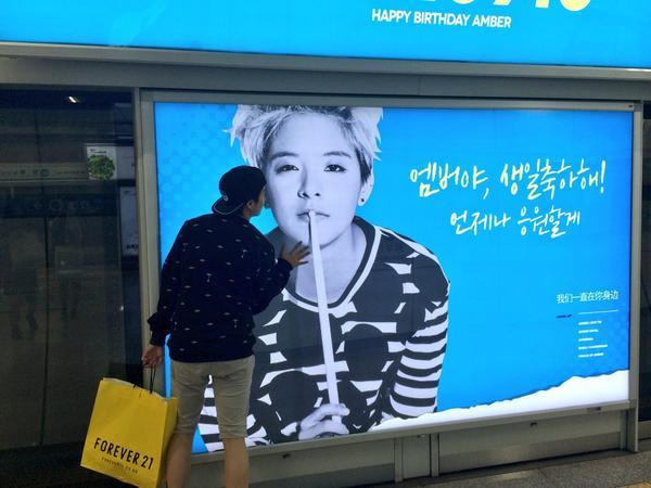 공개된 사진 속 엠버는 지하철 광고판 속 자신의 얼굴을 쓰다듬고 있는 모습이다. 특히 이는 엠버의 팬들이 엠버의 생일을 축하하기 위해 선물한 지하철 광고로 알려져 눈길을 끈다.