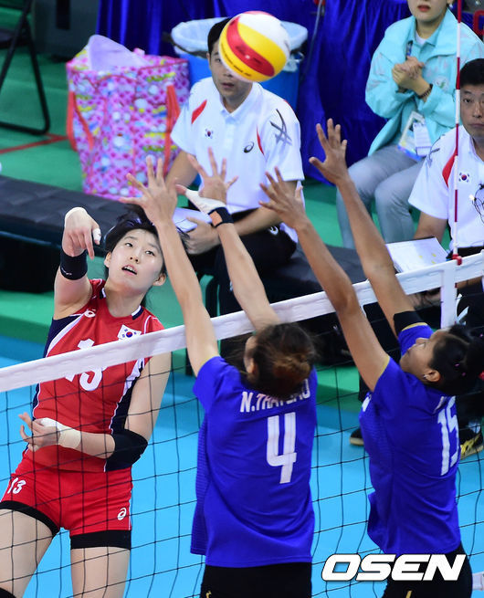 이선구 감독부터 주장 김연경까지 예선전의 '고비'로 꼽은 태국전이었다. 세계선수권대회와 기간이 겹쳐 대부분 2군을 내보낸 중국, 일본과 달리 태국은 1군 정예멤버로 인천아시안게임에 나섰다. 하지만 한국은 '에이스' 김연경(22득점)의 활약이 건재했고, 박정아(16득점)와 양효진(9득점)도 공격을 뒷받침하며 태국전 완승을 이끌었다.