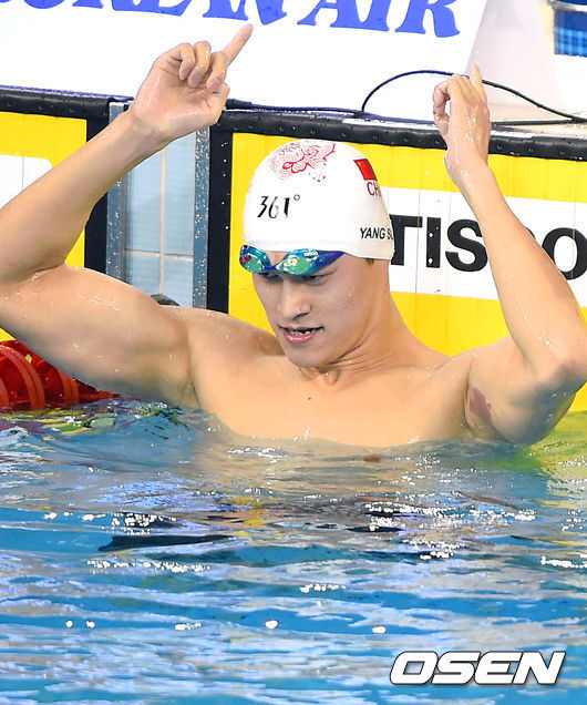 쑨양은 23일 인천 문학박태환수영장에서 열린 2014 인천 아시안게임 남자 자유형 400m 결승에서 3분 43초 23의 기록으로 우승을 차지했다. 하기노 고스케(일본)는 3분 44초 48로 2위에 올랐고 박태환은 3분 48초 33의 기록으로 3위를 차지했다.