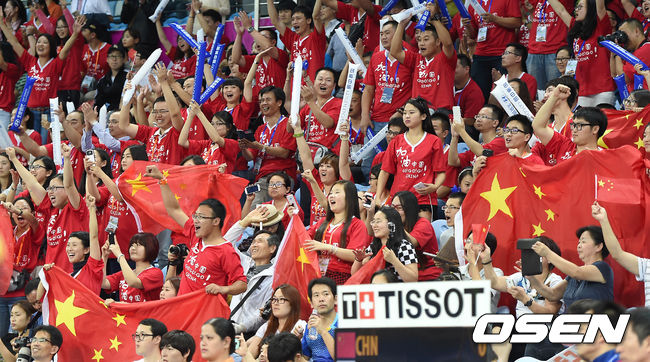 중국 응원단이 열띤 응원을 펼치고 있다.