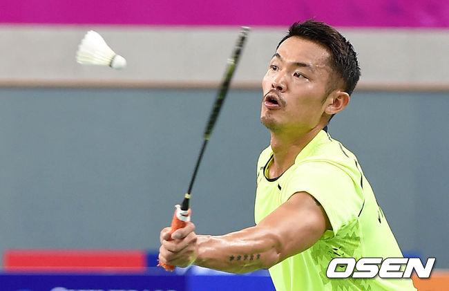 3경기 1세트 중국 린단이 공격을 시도하고 있다.