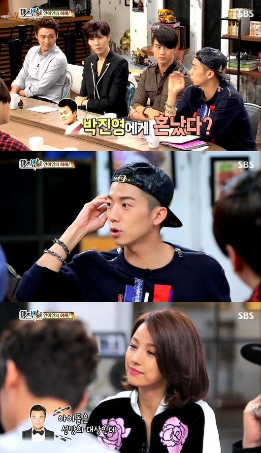 2PM 우영이 편안한 차림의 공항패션 때문에 박진영에게 혼이 난 적이 있다고 밝혔다.