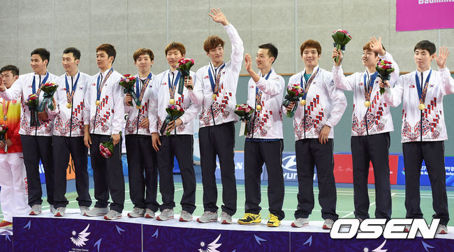 금메달 목에 건 자랑스러운 한국 배드민턴 대표팀