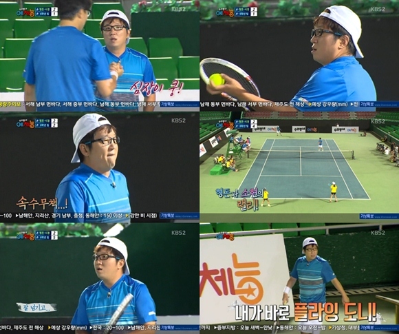 지난 23일 오후 방송된 KBS 2TV 예능프로그램 '우리동네 예체능'의 테니스 편에서는 주니어 팀과 대결하는 내용이 그려졌다. 이날 정형돈은 성시경과 팀을 이뤄 초등학생 여자 전국 랭킹 1위의 선수가 있는 주니어 팀과 대결을 벌였다.