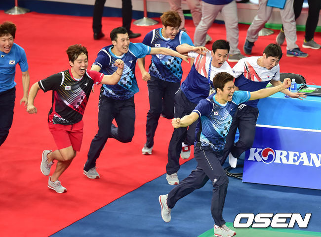 한국은 23일 오후 인천 계양체육관에서 개최된 2014 인천 아시안게임 배드민턴 남자 단체전에서 중국을 상대로 5시간이 넘는 대혈투 끝에 3-2로 짜릿한 승리를 거뒀다. 이로써 한국은 2002년 부산 아시안게임 후 12년 만에 정상을 밟았다. 2-2 동점에서 나선 마지막 주자 이현일은 엄청난 부담감 속에서도 승리를 따내 맏형다운 모습을 보였다.