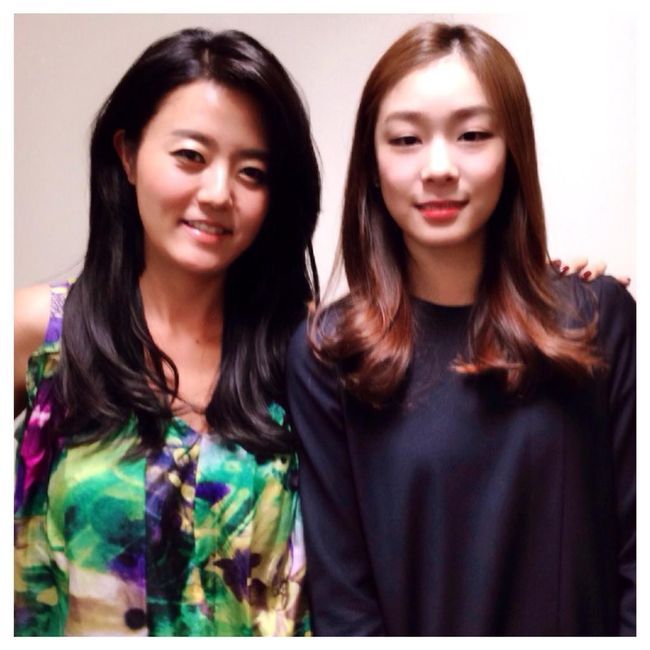 공개된 사진 속 손미나는 김연아의 어깨에 손을 올린 채 카메라를 응시하고 있다. 특히 김연아는 작은 얼굴과 브라운색 웨이브 머리로 미모를 과시해 눈길을 끌었다.