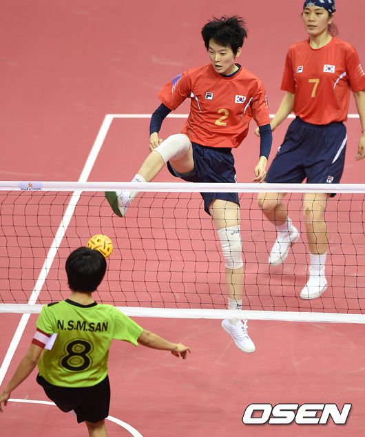 24일 오후 부천시 부천체육관에서 열린 제17회 인천 아시안게임 세팍타크로 여자 예선 B조 한국과 미얀마의 경기가 열렸다.