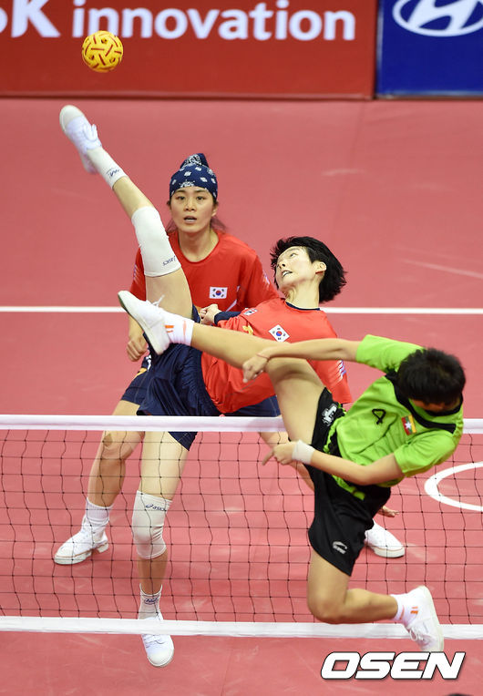 24일 오후 부천시 부천체육관에서 열린 제17회 인천 아시안게임 세팍타크로 여자 예선 B조 한국과 미얀마의 경기가 열렸다.