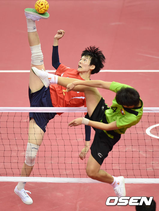 24일 오후 부천시 부천체육관에서 열린 제17회 인천 아시안게임 세팍타크로 여자 예선 B조 한국과 미얀마의 경기가 열렸다.