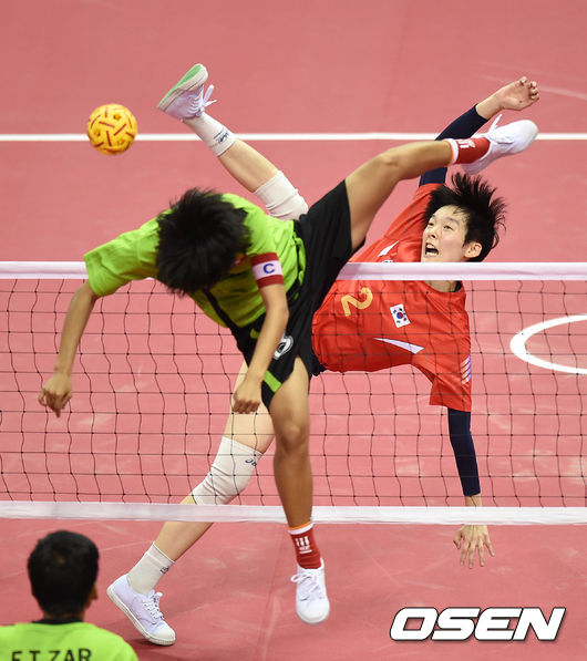 24일 오후 부천시 부천체육관에서 열린 제17회 인천 아시안게임 세팍타크로 여자 예선 B조 한국과 미얀마의 경기가 열렸다.