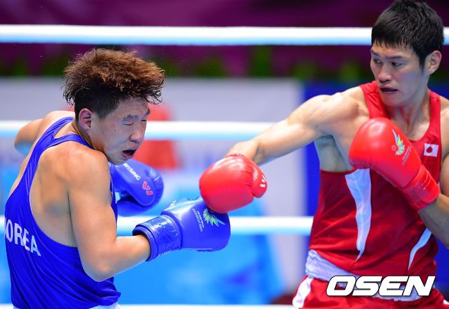 구교성이 24일 오후 인천 선학체육관 내 복싱장에서 열린 2014 인천아시안게임 복싱 남자 웰터급 69kg급 일본 스즈키 야쉬로와의 32강전에서 패했다.
