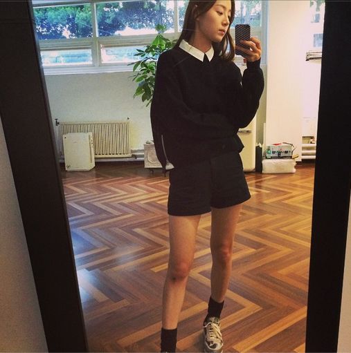 한지혜는 24일 자신의 인스타그램을 통해 "카라셔츠, 니트, 반바지, 양말과 스니커즈"라는 글과 함께 사진 한 장을 게재했다.