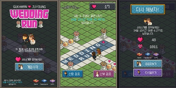일반적인 결혼식의 날짜와 식장의 위치, 시간 등이 표기되어 있는 모바일 페이지의 링크를 전송하는 방식과 달리 아예 게임으로 만들어 앱스토어와 구글플레이에 아예 그냥 청첩장을 등록해버린 것. 청첩장의 이름은 '웨딩런' 으로 구글플레이와 iOS 앱스토어로써 국내의 스마트폰을 사용하는 유저라면 누구나 청첩장을 다운받아 플레이 할 수 있게 했다.