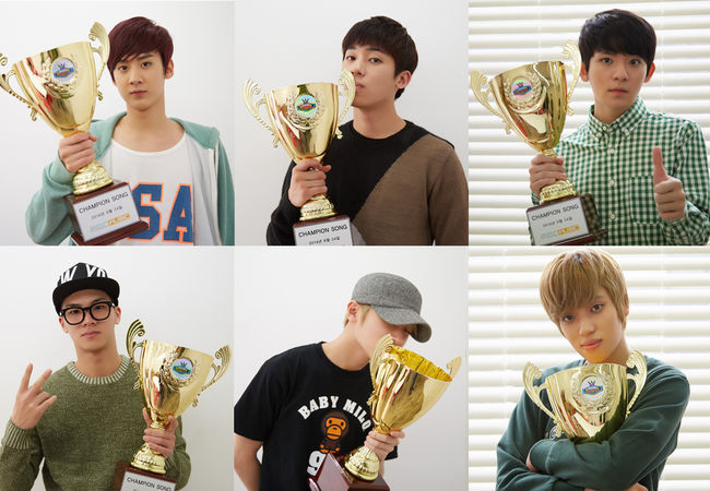 그룹 틴탑이 컴백 후 음악 순위프로그램 첫 1위를 기록, 트로피와 함께 한 인증샷을 공개했다.