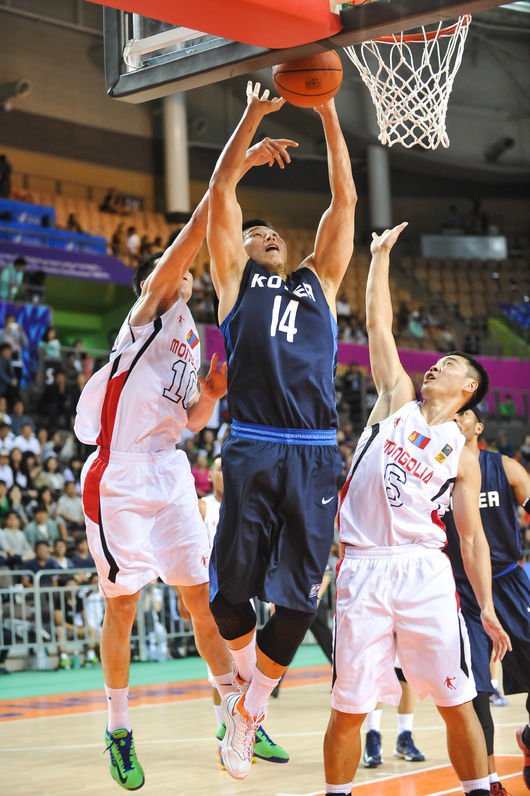 유재학 감독이 이끄는 한국 남자 농구대표팀은 24일 경기도 화성스포츠타운 체육관에서 열린 2014 아시안게임 D조 1차전서 몽골에 90-67로 승리했다. 이날 한국은 오세근(22점, 8리바운드)이 골밑장악에 성공하며 몽골을 물리쳤다.