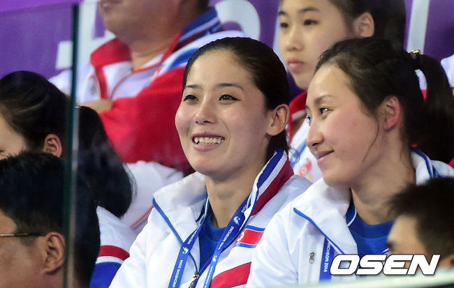 24일 오후 인천 남동체육관에서 열린 2014 인천 아시안게임 기계체조 남자 마루 결승에서 북한 싱크로나이즈 김은아가 미소를 짓고 있다.