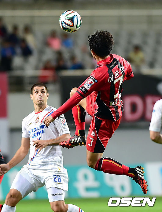 24일 오후 서울월드컵경기장에서 열린 '현대오일뱅크 K리그 클래식 2014' FC 서울과 경남 FC의 경기 전반, 서울 이웅희가 공중볼을 처리하고 있다.