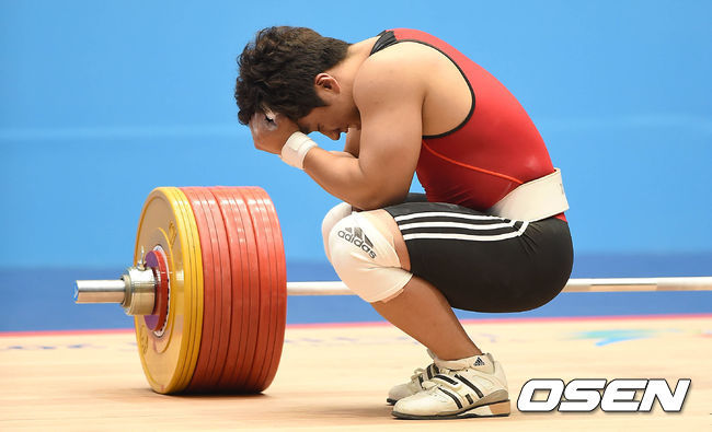 또 다른 한국대표 정태홍은 인상에서 157kg을 세 번 실패해 역시 실격 처분을 당했다. 간판스타들이 줄줄이 부진한 한국 역도는 인천 아시안게임서 노메달 위기에 처하게 됐다.