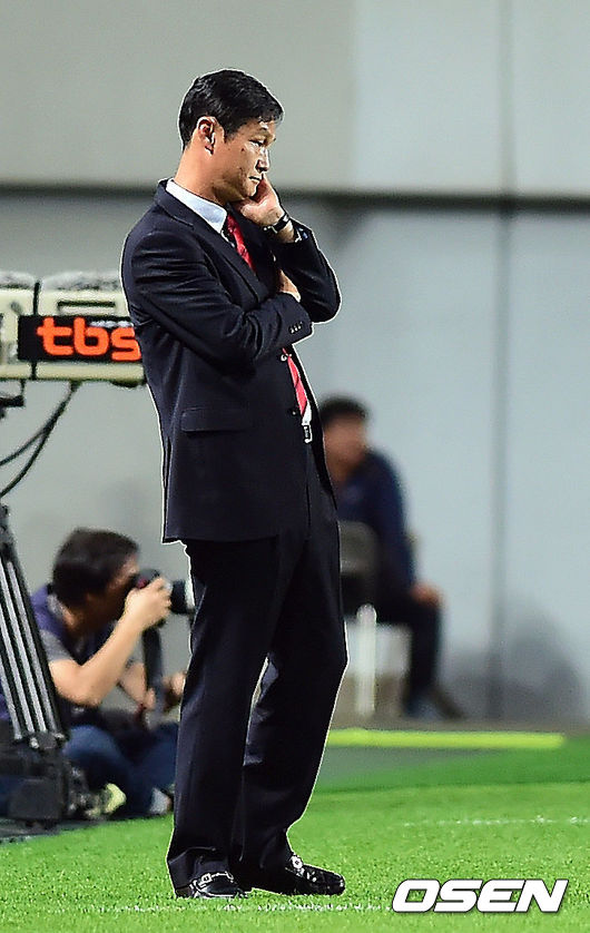 24일 오후 서울월드컵경기장에서 열린 '현대오일뱅크 K리그 클래식 2014' FC 서울과 경남 FC의 경기 전반, 서울 최용수 감독이 경기를 바라보고 있다.