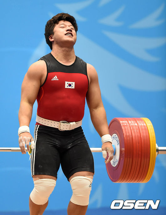 용상 210kg에 실패한 한국 사재혁이 아쉬워하고 있다. /sunday@osen.co.kr