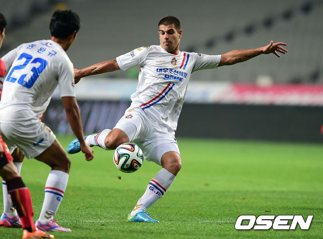 24일 오후 서울월드컵경기장에서 열린 '현대오일뱅크 K리그 클래식 2014' FC 서울과 경남 FC의 경기 후반, 경남 에딘이 슈팅을 시도하고 있다.