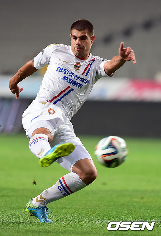 24일 오후 서울월드컵경기장에서 열린 '현대오일뱅크 K리그 클래식 2014' FC 서울과 경남 FC의 경기 후반, 경남 에딘이 슈팅을 시도하고 있다.