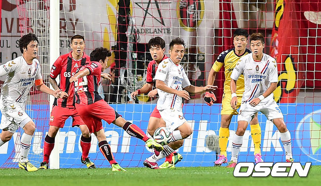 24일 오후 서울월드컵경기장에서 열린 '현대오일뱅크 K리그 클래식 2014' FC 서울과 경남 FC의 경기 후반, 서울 고요한이 동점골을 넣고 있다.
