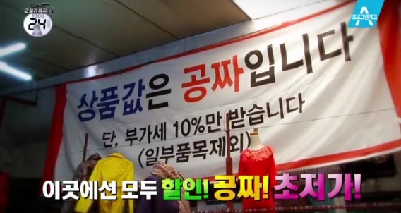 식사동 덤핑거리 킴스 무역은 의류 전문점으로 부가세인 금액 10%만 받고 물건을 파는 곳이다.