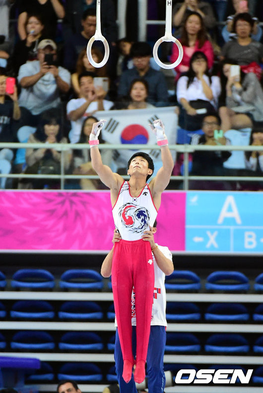 한편 양학선은 이날 리듬체조 종목별 결승전 첫날 경기서 마루와 링 종목에 출전했다. 주종목 도마 결승전을 하루 앞둔 상황에서 오른쪽 햄스트링이 아픈 양학선이 얼마나 컨디션을 회복했을지 관건이었다.