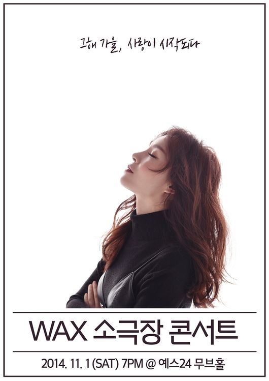 [OESN=김사라 기자] 가수 왁스(WAX)가 오는 11월 1일 소극장 콘서트 ‘그해 가을, 사랑이 시작되다’를 개최한다.