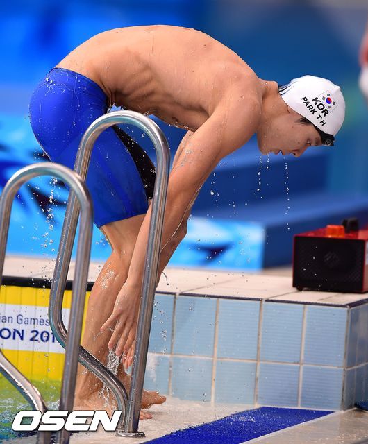 25일 오후 인천 연수동 문학박태환수영장에서 열린 2014 인천 아시안게임 수영 남자 100m 예선에서 1위를 차지한 박태환이 레인을 벗어나고 있다.