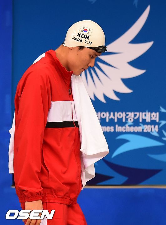 25일 오후 인천 연수동 문학박태환수영장에서 열린 2014 인천 아시안게임 수영 남자 100m 예선에서 박태환이 입장하고 있다.